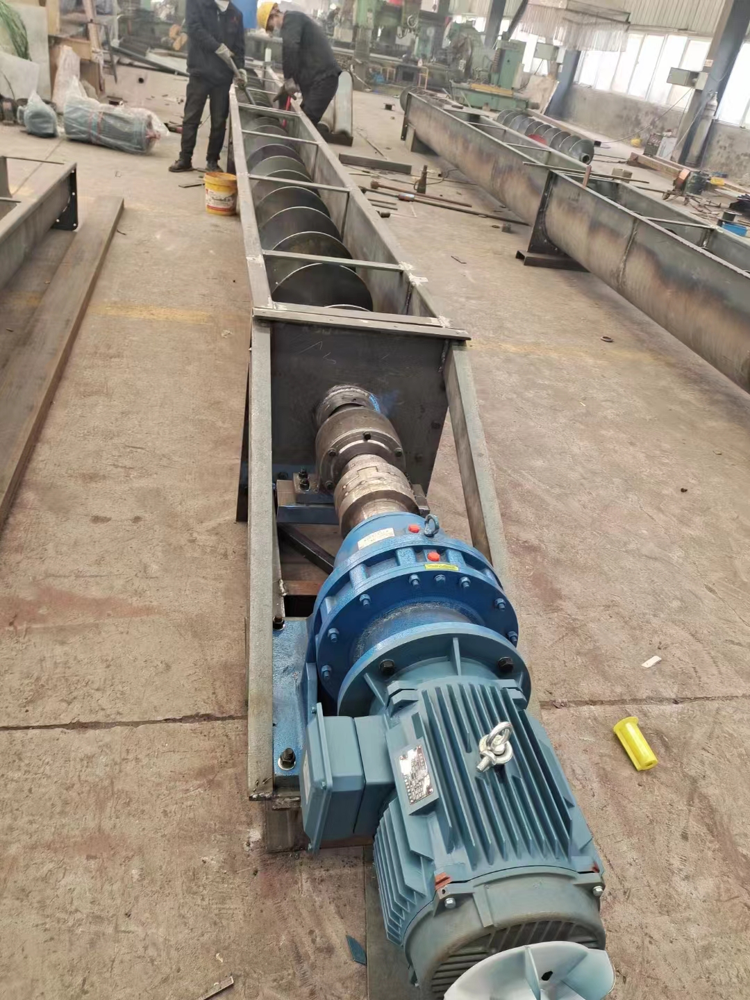 今天接到電話。洛陽(yáng)一個(gè)客戶咨詢我們螺旋輸送機(jī)??蛻糨斔偷奈锪厦悍邸]斔土坎淮蟆N覀兊募夹g(shù)給客戶設(shè)計(jì)了一臺(tái)U型螺旋輸送機(jī)。型號(hào):LX250-7米螺旋輸送機(jī),客戶要求輸送距離是7米長(zhǎng)。我們技術(shù)設(shè)計(jì)的箱體總長(zhǎng)7.5米。輸送機(jī)箱體的板厚3mm、電機(jī)配的是4KW電機(jī)。減速機(jī)是BWD-2型。歡迎有需要的客戶來(lái)電咨詢我們。聯(lián)系電話:15560202577(同微信)